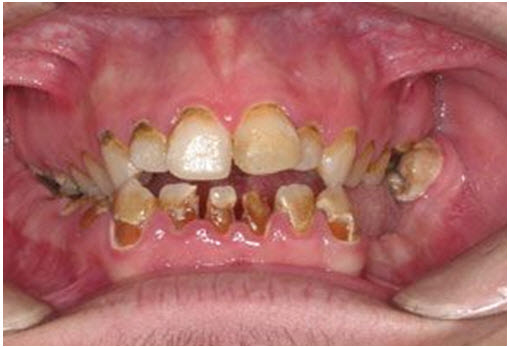 Nažalost i direktno aktivno pušenje je već u osnovnoj, a pogotovu u srednjoj školi veoma zastupljeno, a predstvalja veliki rizik za razvoj oboljenja zuba i pogotovu desni. Uzimanje droge je praćeno agresivnim oblicima karijesa i oboljenja desni(Slika 3.).