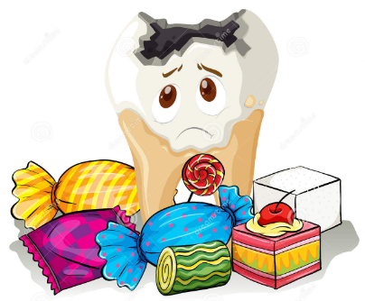 Šećeri omogućavaju dominaciju štetnih bakterija u zubnom plaku. Takav plak se čvršće vezuje za površinu zuba, u njemu se stavraju kiseline(preradom šećera) koje dodvode do karijesa, a predstavlja i podlogu u kojoj će se dalje nagomilavati bakterije izazivači oboljenja desni(parodontalna oboljenja).