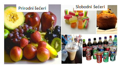 Opasni su tzv. SLOBODNI ŠEĆERI( rastvorljivi, dodati). Oni pripadaju hemijskoj grupi prostih šećera(mono i disaharidi) i dodaju se hrani i napitcima od strane proizvođača, tokom kuvanja ili radi zaslađivanja. Ovde spadaju i šečeri prirodno prisutni u medu, sirupima voćnim sokovima i koncentratima.(slika 1.)