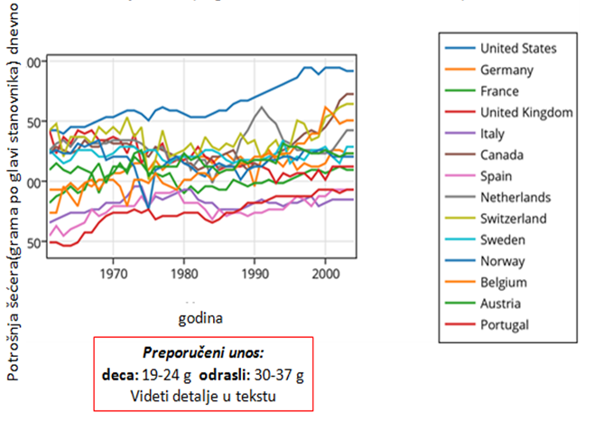Treba napomenuti da se u poslednjih nekoliko decenija potrošnja slobodnih šećera u svetu udvostručila.(Slika 4.)