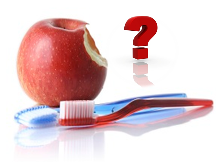 Kada je reč o zubima, preporuka Britanskog udruženja stomatologa je da se jabuke jedu isključivo uz obroke i da se posle dobro isperu usta sa vodom ili nekim remineralizacionim rastvorom. Uzimanje jabuka, ali i drugog voće se ne preporučuje kao redovna užina i pogotovu ne previše često i u većim količinama. Ovo je pak u suprotnosti sa preporukama jednog broja nutricionista koji smatraju da kada se jabuka(pa i drugo voće) uzima u sklopu obroka, onda drugi sastojci hrane značajno umanjuju upijanje hranljivih materija.