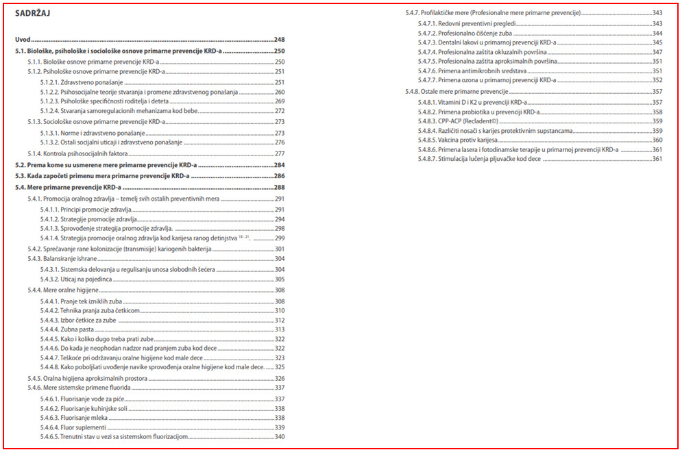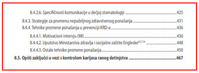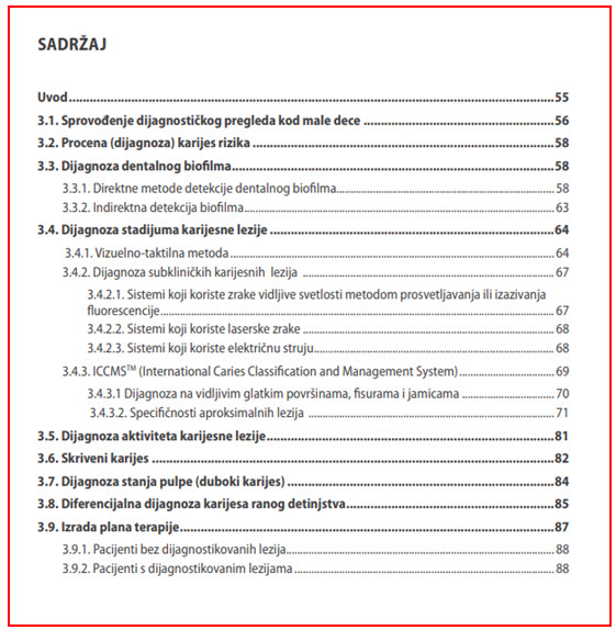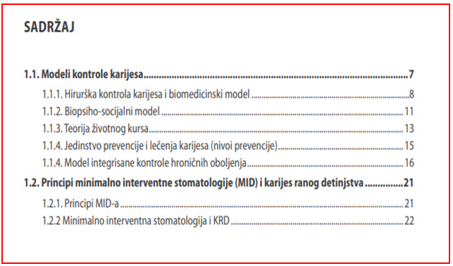 Sva istraživanja, kao i klinička praksa su nedvosmisleno pokazale da je karijes, pogotovo u najranijem detinjstvu, visoko preventiabilan. Poznate su i javno – zdravstveno prihvatljive metode primarne prevencije ali je nivo njihovih primena i dalje nezadovoljavajući u većem delu čovečanstva, pa i u našem (balkanskom) regionu. Prevencija se deklarativno postavlja kao osnova sistema kontrole hroničnih nezaraznih bolesti (kojima pripada i karijes), ali pošto je primena mera vezana za ponašanje pojedinca i zajednice, zahteva i poznavanje principa motivacije i promene ponašanja. Upravo se u toj oblasti članovi stomatološkog tima veoma slabo obučavaju, kako tokom osnovnih i postdiplomskih studija, tako i kroz kontinuiranu edukaciju. U knjizi je posebna pažnja posvećena savremenom psihološkom pristupu u formiranju i promeni zdravstvenog ponašanja kod roditelja i dece (poglavlja 5 i 8).