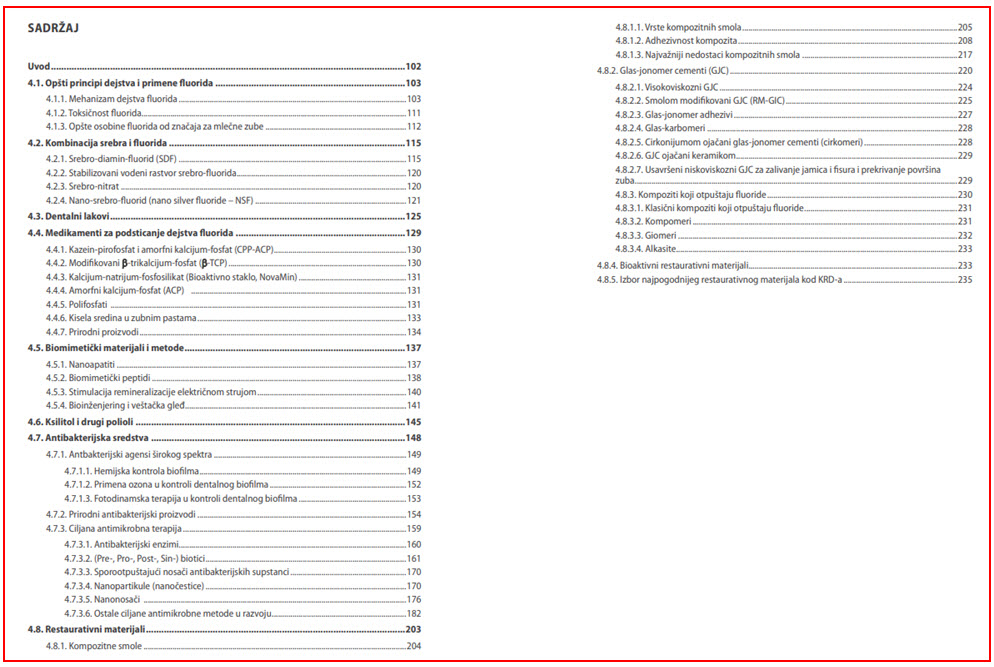 Poslednje decenije su donele izuzetan tehnološki napredak i revolucionarne promene u svim oblastima dentalne medicine. U 4. poglavlju je iznesen opširan prikaz medikamenata i materijala koji značajno poboljšavaju efikasnost savremenih preventivnih i terapijskih zahvata u periodu mlečne denticije.