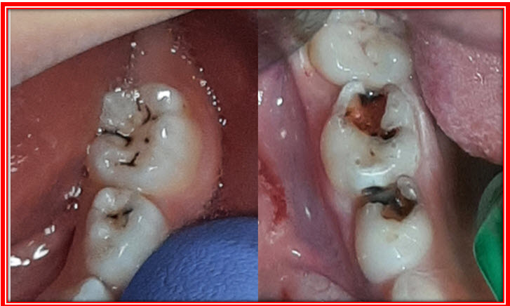 Poslednje decenije u svetu sve veću popularnost dobijaju i NERESTAURATIVNE TEHNIKE, kod kojih se karijesni proces sa kavitetom u poptPunosti zaustavlja sa preparatima srebra i fluorida,  bez bilo kakve preparacije zubnog tkiva i postavljanja ispuna (Slika 3.)