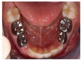 Kada je razaranje zuba usled karijesa veliko(pogotovu na mlečnim zubima), plombe često nisu dovoljne da se odupru silama žvakanja. One lako pucaju, ali isto tako može da se slomi i sam zub. U takvim slučajevima se umesto plombe preporučuje postavljanje krunice. Za mlečne zube se koriste posebne,fabričke čelične ili plastične, a u poslednje vreme i cirkonijumske krunice.(Slika 3.) Detaljnije