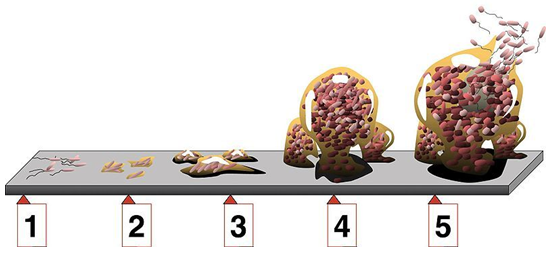 Na slici 2. su prikazane 5 faza u razvoju svakoga biofilma.