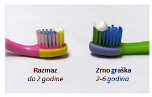 Kod dece koja ne pokazuju znake rizika, što je izuzetno retko za naše sredine(prema nekim istraživanjima tu bi spadalo samo ), moglo bi do druge godine da se koristi i zubna pasta sa 500 ppm u količini zrna graška.