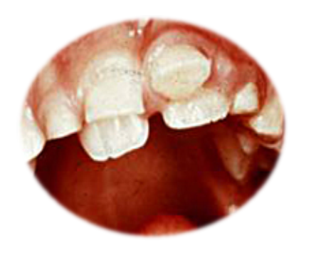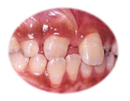 Slično se može očekivati ako se stalni gornji zubi pojavljuju iza mlečnih(Slika 3.). Ponekada se dešava da posle povreda ili infekcije, korenovi mlečnhi zubi srastaju sa kosti(stručno se zove ankiloza), ne dolazi do njihovog topljenja, pa su stalni sekutići primorani da izlaze sa unutrašnje strane. To ih isto može dovesti u gore spomenuti ukršteni zagrižaj.