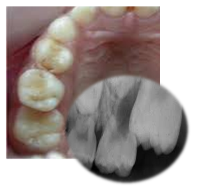 Poseban oblik nepravilnosti nicanja odnosi se na nepravilno kretanje prvog stalnog molara(“šestica”) previše napred, pri čemu vrši pritisak na mlečni molar(“petica”). (Slika 4). To može dovesti do topljenja mlečnog zuba, njegovog ranijeg gubitka, što opet uslovljava dalje pomeranje “šestice” i zatvaranje prostora u koji treba da iznikne drugi premolar(“stalna četvorka”). To zahteva složeno ortodontsko lečenje, a ponekad i vađenje zdravog stalnog zuba.