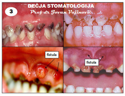 Zatim dolazi do daljeg pucanja i razaranja zuba sve dok se ne sravene sa desnima ili ne dođe do infekcije u kosti.(slika 3.)