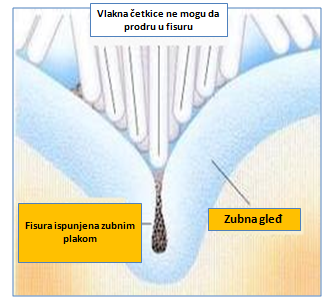 Najosetljivija mesta za razvoj zubnog kvara su jamice i žljebovi na griznim površinama bočnih zuba. Tu lako zapadaju ostatci hrane,zadržavaju se i razmnožavaju bakterije, formira se zubni plak i praktično nemoguće je da se ukloni sa četkicom i drugim metodama čišćenja.(slika 1).