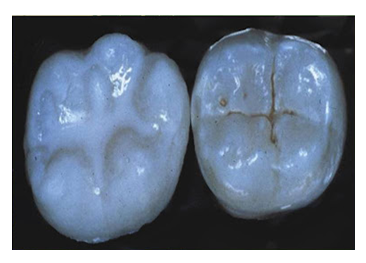 Slika 1. Fisure na griznim površinama se teškom čiste i zato se tu najčšće i javlja karijes.